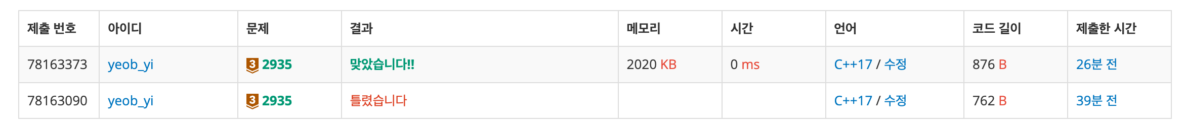 이렇게만 구현했는데 틀렸다고 나와서 더 생각해보니, 1+1, 100+100 등 동일한 수를 더하는 경우 2, 200처럼 ans[0]이 2가 되어야 했다.